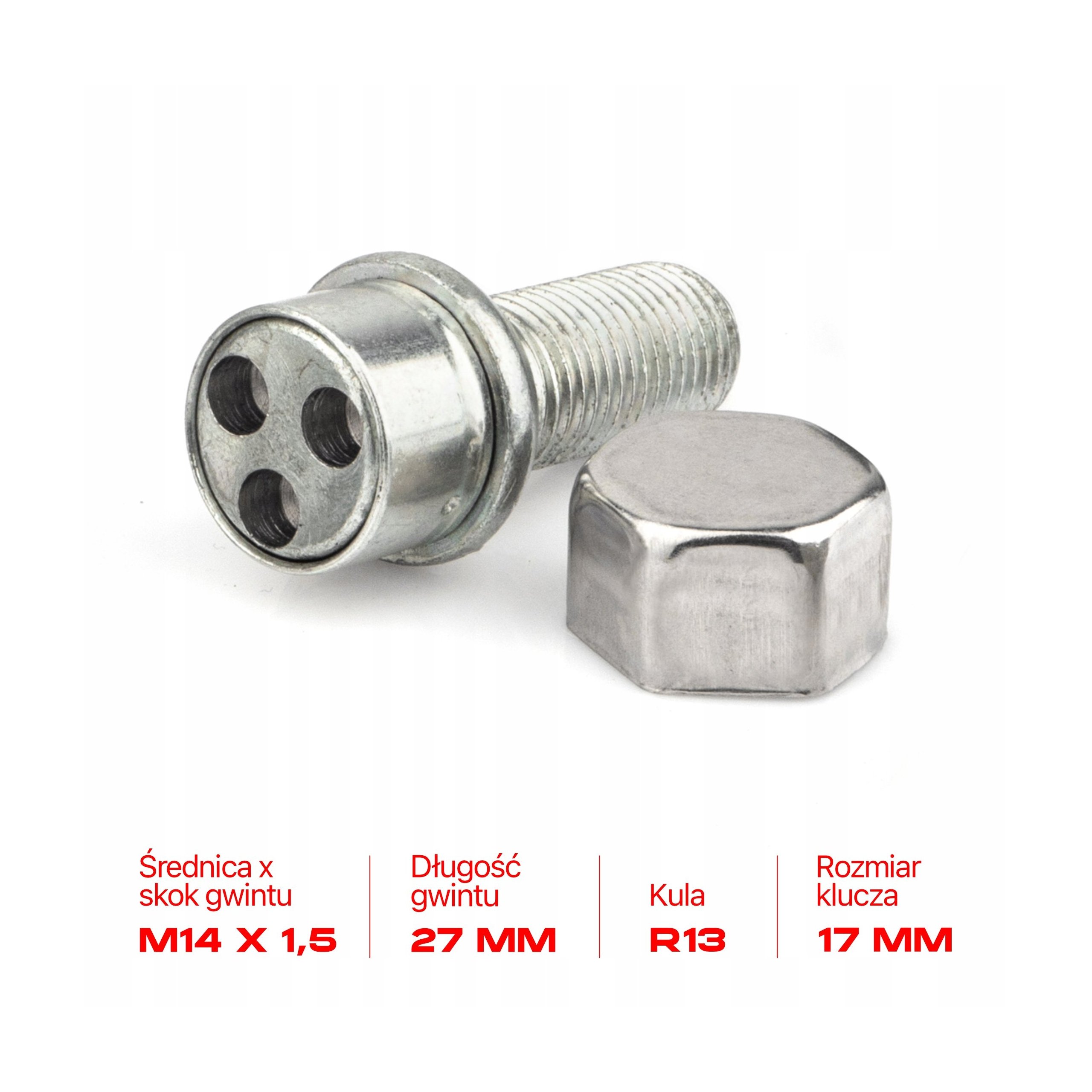 Each set includes a key (an adapter between the security bolt and a regular key) that can withstand a torque of up to 400 N/m, which is four times more than the torque required to tighten the bolts to the wheels (80-120 N/m). If lost, it is possible to order a new wrench specifically for your groove pattern.