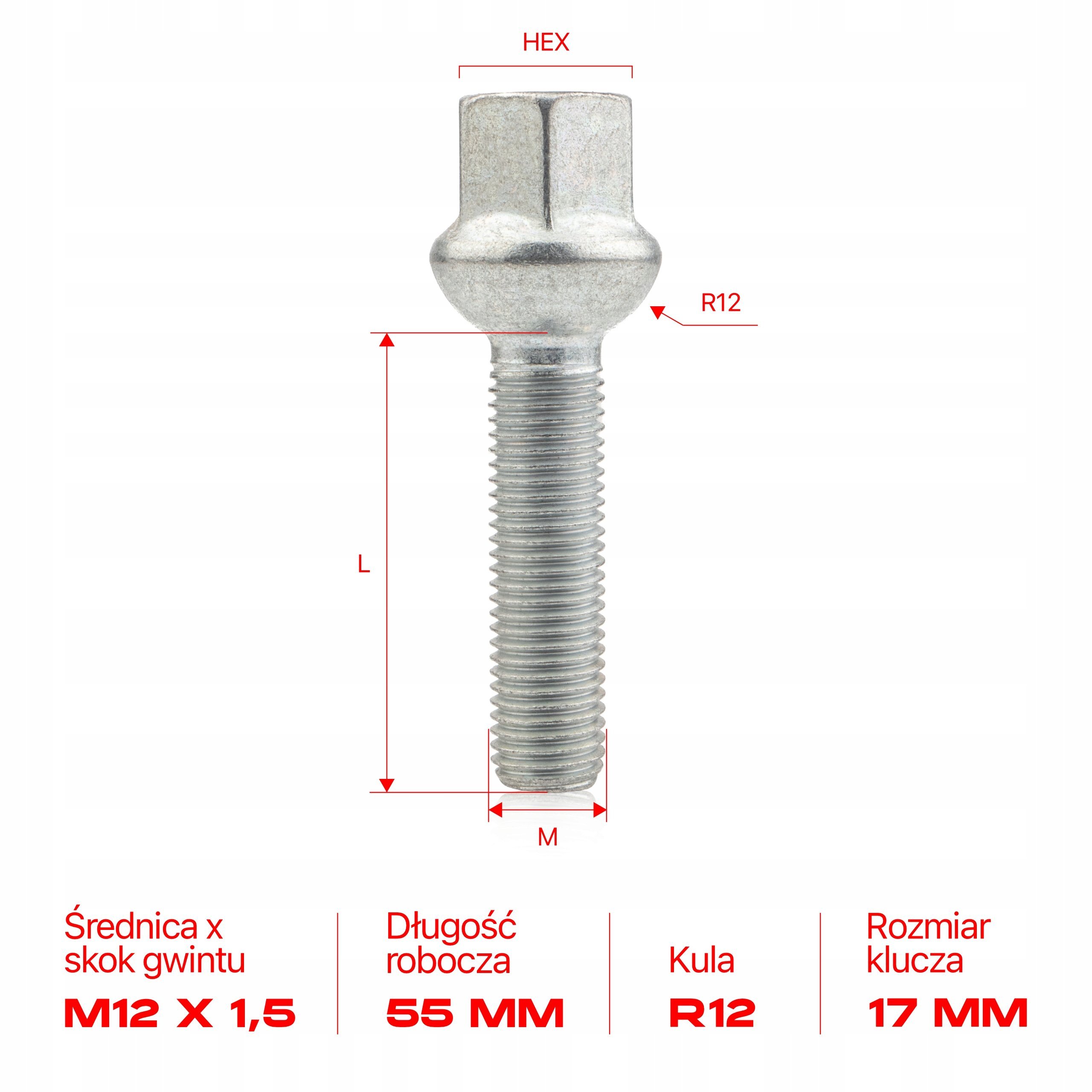 - HEX – Rozmiar klucza (mm): 17
